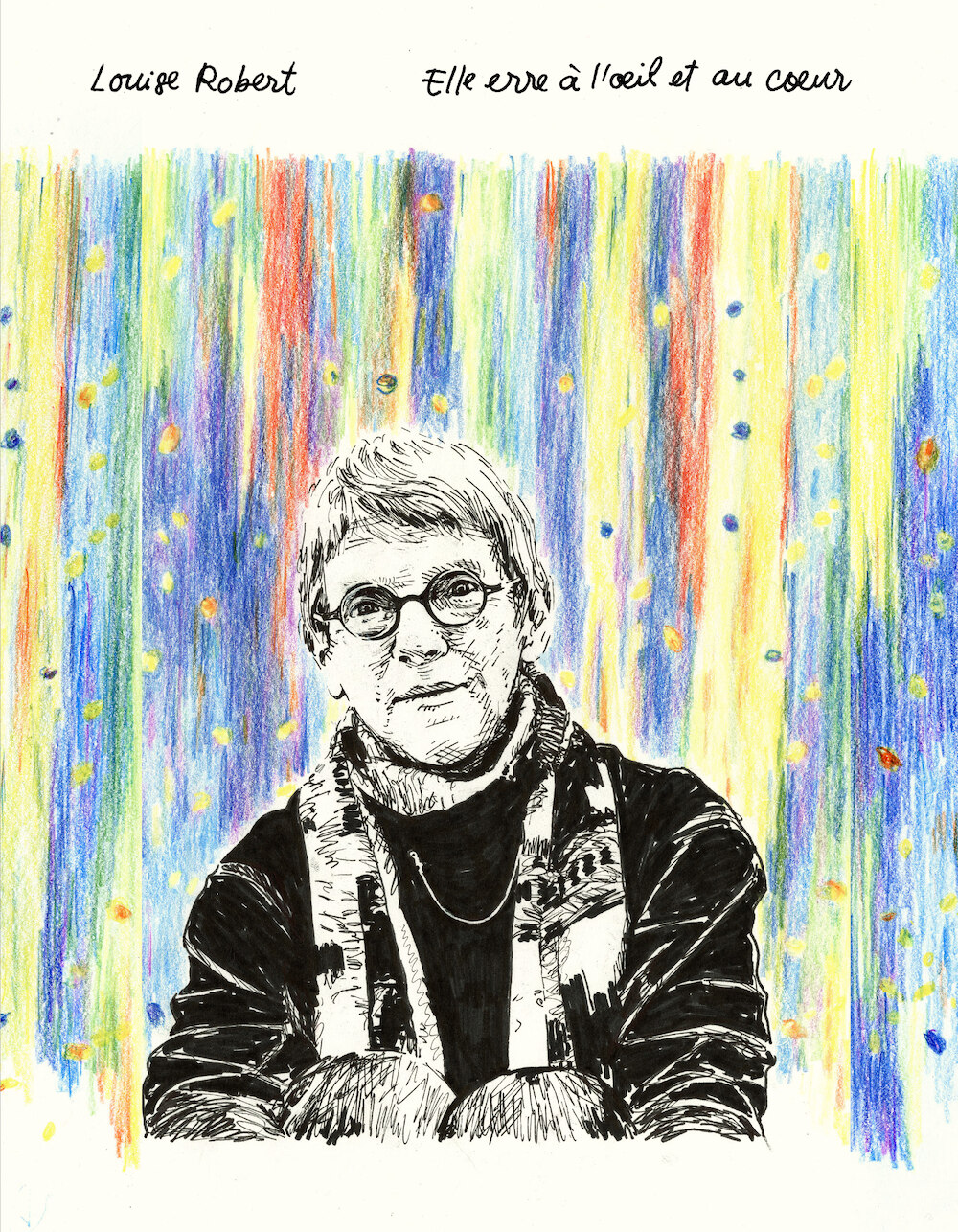 À l’invitation des Éditions de la Salle Alfred-Pellan, l’artiste Emmanuelle Jacques s’est entretenue avec l’historien de l’art Michel Huard autour de la création du catalogue raisonné de l’œuvre de Louise Robert. De ces échanges est né un récit intime et touchant, illustré de dessins vifs et sincères. À mi-chemin entre le roman graphique et le fanzine, Elle erre à l’œil et au cœur propose un texte poignant, une immersion dans un long travail d’enquête, et un regard sensible sur l’histoire de l’art québécois de la fin du XXe siècle à aujourd’hui.