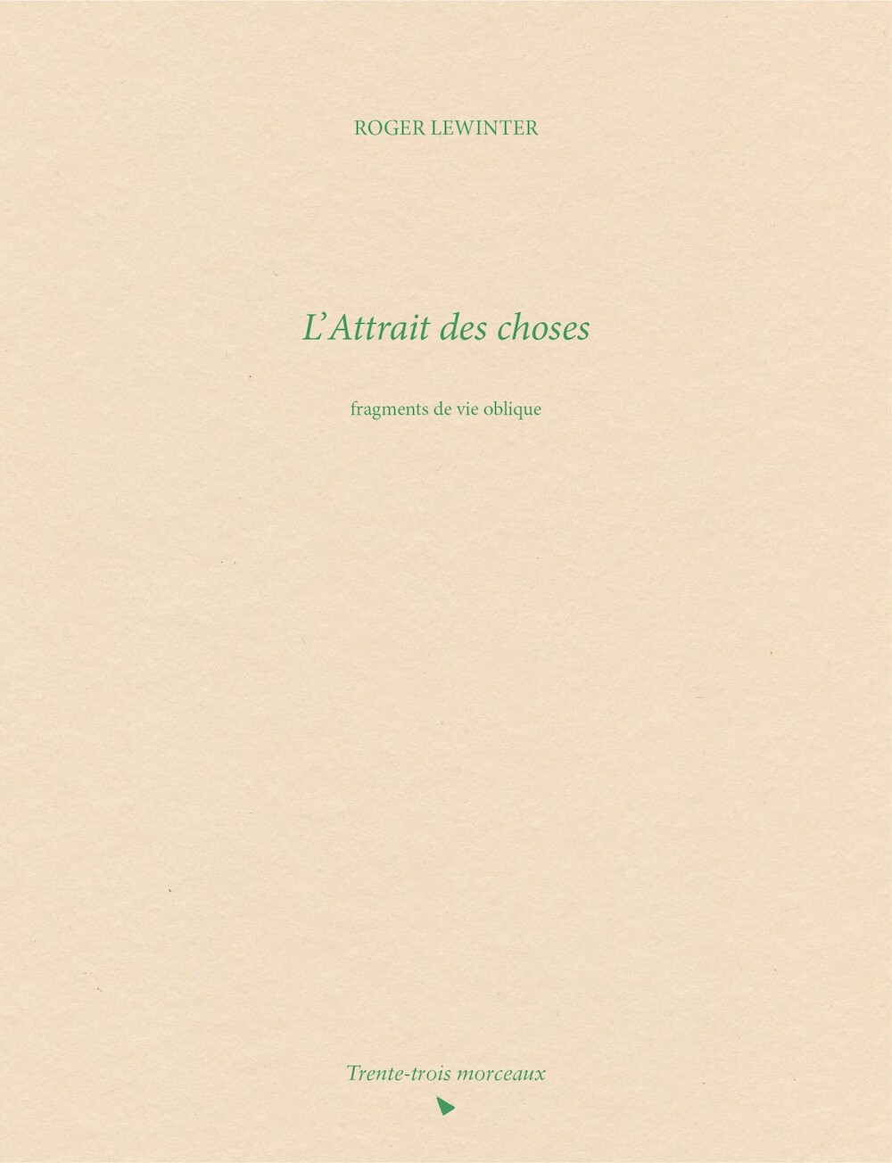Publié une première fois en 1985, L’Attrait des choses est « l’histoire d’un être qui se laisse aller à ce qui l’attire, à ce qu’il attire – êtres, œuvres, choses –, et qui, sur la lancée des rencontres successives, trouve l’issue du labyrinthe au cœur, où frappe la foudre. » (Roger Lewinter). Aimantée à un quotidien concret dont la pierre de touche serait ici le marché aux Puces, à Genève, espace de divination par excellence où s’entrecroisent vie et mort, l’écriture se joue comme une façon de relier époques et voix, et de les articuler à l’énigme d’un destin.