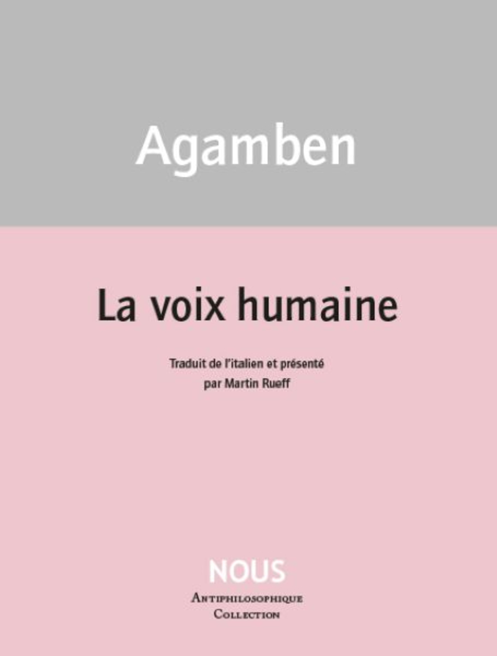 Giorgio Agamben (1942) est philosophe. Son œuvre, traduite et commentée dans le monde entier, exerce une influence profonde. La somme Homo Sacer, qui recueille une dizaine de ses ouvrages publiés entre 1997 et 2015, est considérée comme un tournant dans la réflexion philosophie politique contemporaine. La voix humaine, publié en Italie par Quodlibet en 2023, est le deuxième livre de Giorgio Agamben aux éditions Nous, après Ce que j’ai vu, entendu, appris... paru en 2024, également traduit par Martin Rueff.