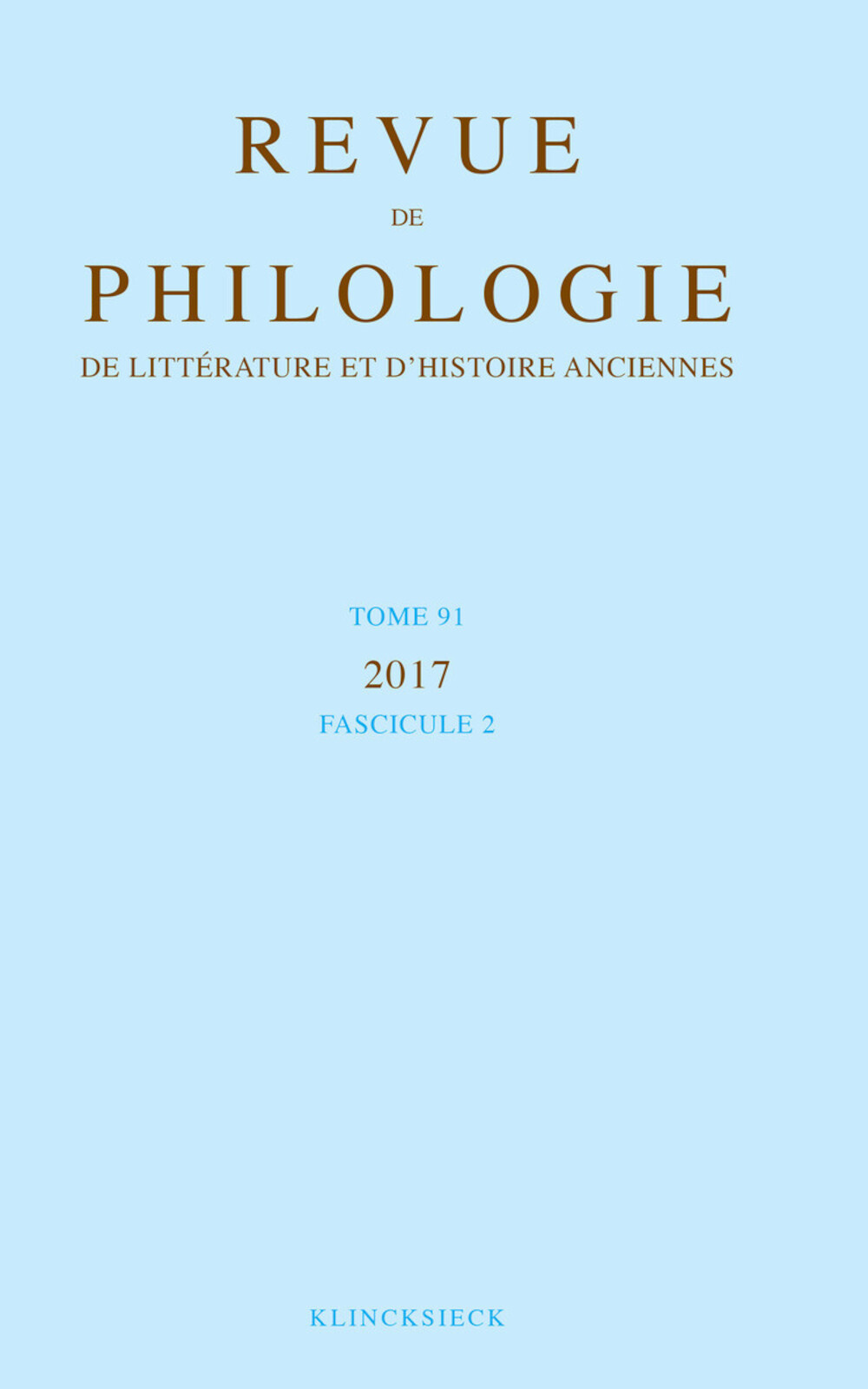 Revue de philologie, de littérature et d'histoire anciennes, v. 91-2