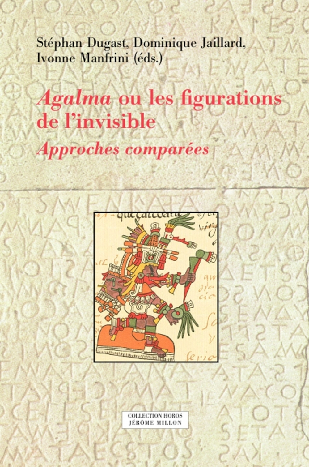En restituant la polymorphie des supports des fonctions agalmatiques, le volume « Agalma ou les figurations de l’invisible. Approches comparées » entend mettre en place un dialogue comparatiste de type contrastif, expérimental et constructif, au plus loin de l’analogisme, à partir de la microanalyse de sources (interagissant ou non avec l’observateur selon qu’il est anthropologue ou historien) qui restituent séquences rituelles, objets et « textes », inscrits dans des espaces aussi différents que l’Afrique sub-saharienne, l’Amérique précolombienne, la Chine des marges, l’Europe moderne et contemporaine, l’Inde védique, la Méditerranée et le Proche-Orient antiques.