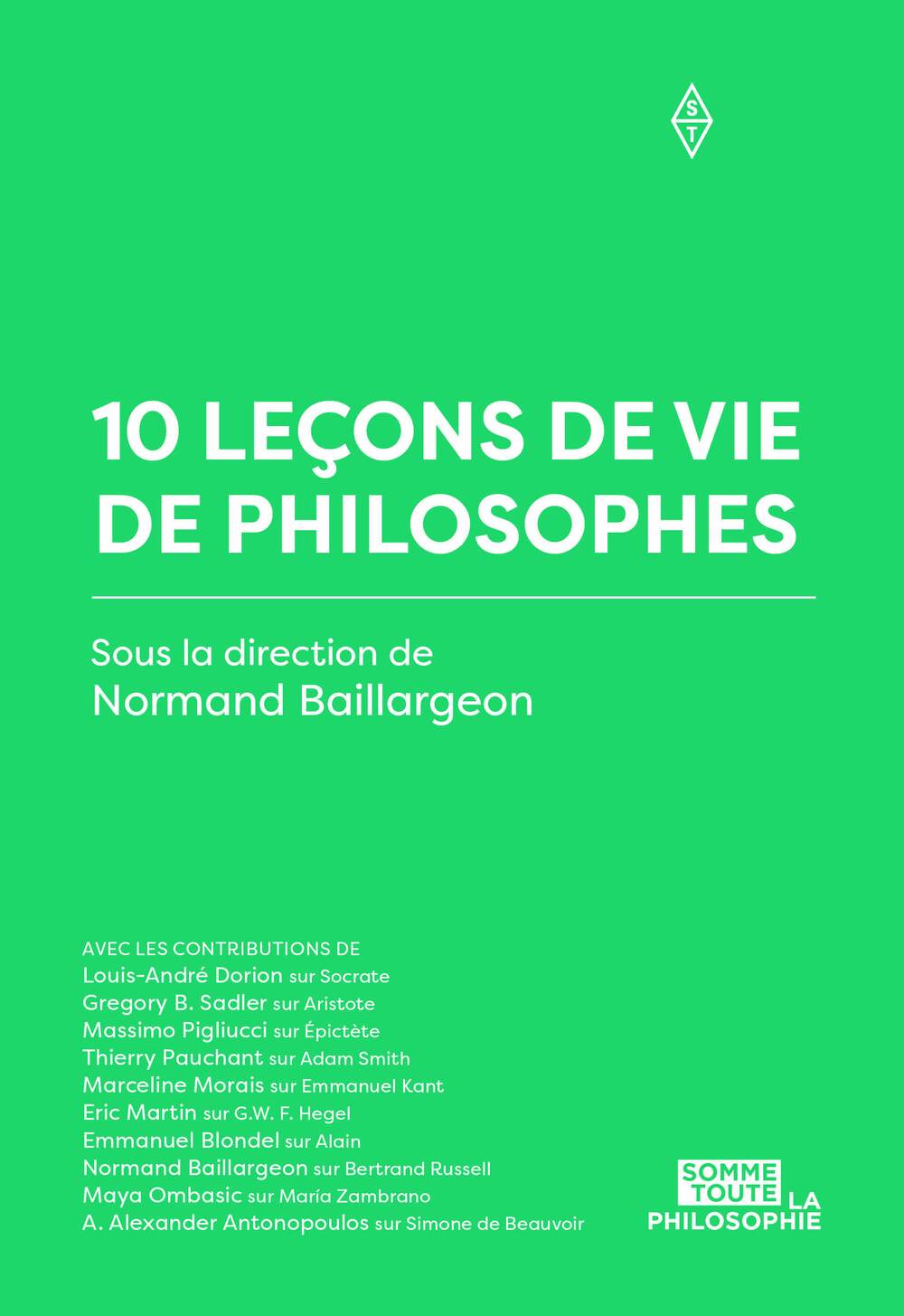 Avec des textes de : Louis-André Dorion (Socrate); Gregory B. Sadler (Aristote); Massimo Pigluicci (Épictète); Thierry Pauchant (Adam Smith); Marceline Morais (Emmanuel Kant); Éric Martin (G.W F Hegel); Emmanuel Blondel (Alain); Normand Baillargeon (Bertrand Russell); Maya Ombasic (Maria Zambrabo) et A. Alexander Antonopoulos (Simone de Beauvoir).