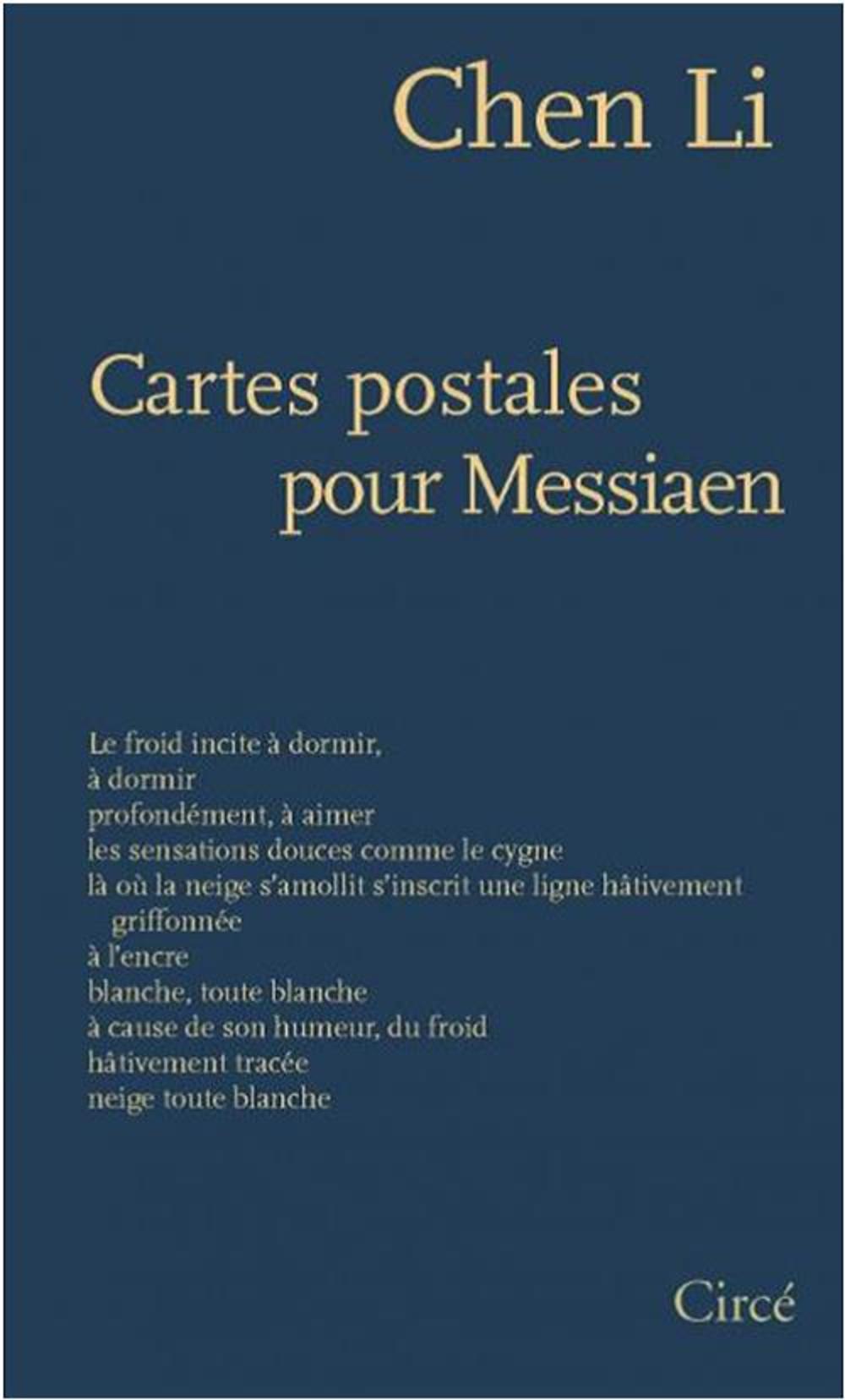 Le recueil Cartes postales pour Messiaen rassemble des poèmes composés des années 1970 à aujourd’hui, qui se caractérisent par leur humour, leur profondeur, la force des images. Épris d’art et de musique, Chen Li a fait sien le mot du compositeur japonais Tōru Takemisu, qu’il cite à propos de son poème éponyme et qui peut s’appliquer à toute sa création : « La musique, dans son essence, semble inséparable de la tristesse. C’est la tristesse de l’existence. Plus vous êtes empli de la joie de la création musicale, plus profonde est la tristesse. » Comme le suggère le titre du recueil, Chen Li s’inspire volontiers de l’oeuvre de compositeurs, mais aussi de peintres occidentaux ou chinois. Chaque poème est pour lui une sorte de lettre intime ou de carte postale envoyée au monde.
