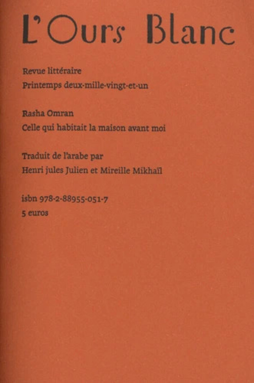 Une femme solitaire aperçoit un double fantomatique lorsqu’elle se regarde dans les miroirs de la maison cairote où elle vient de s’installer. Une femme, qu’elle imagine recluse et solitaire comme elle, a vécu là avant elle. Les 85 brefs poèmes qui constituent le cycle de Celle qui habitait la maison avant moi reviennent de manière quasi-obsessionnelle à cette présence muette, inquiétante et familière tout à la fois, avec laquelle la nouvelle occupante tente d’établir un impossible dialogue.