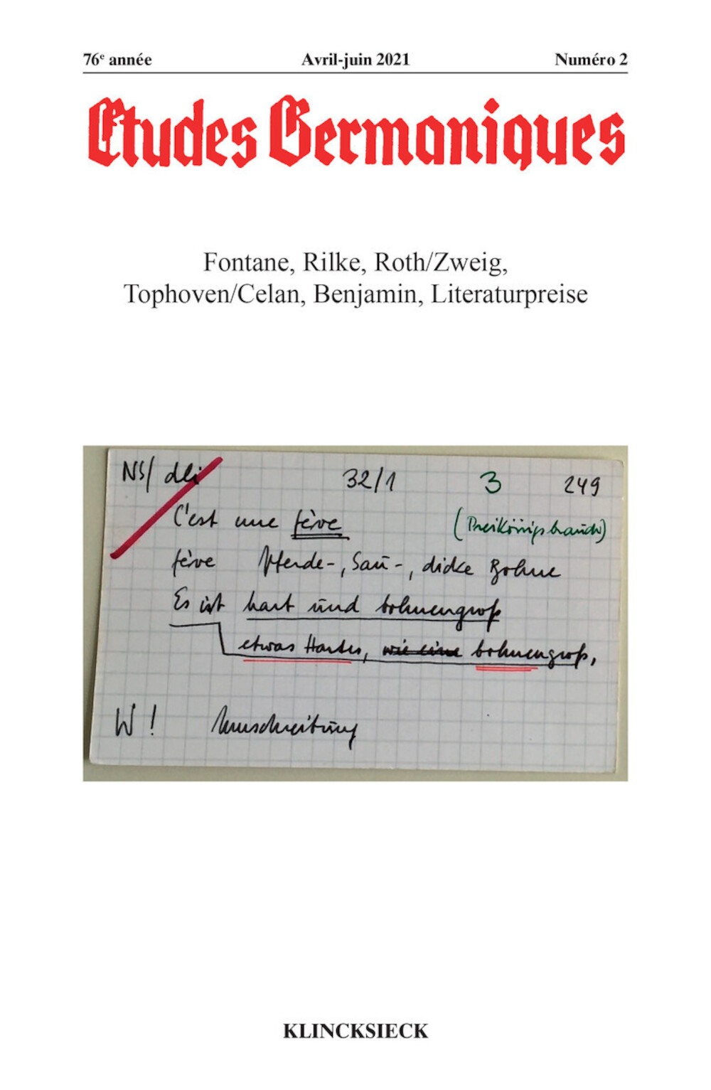 Fontane, Rilke, Roth/Zweig, Tophoven/Celan, Benjamin, Literaturpreise Banoun, Bernard - Éditeur : Klincksieck