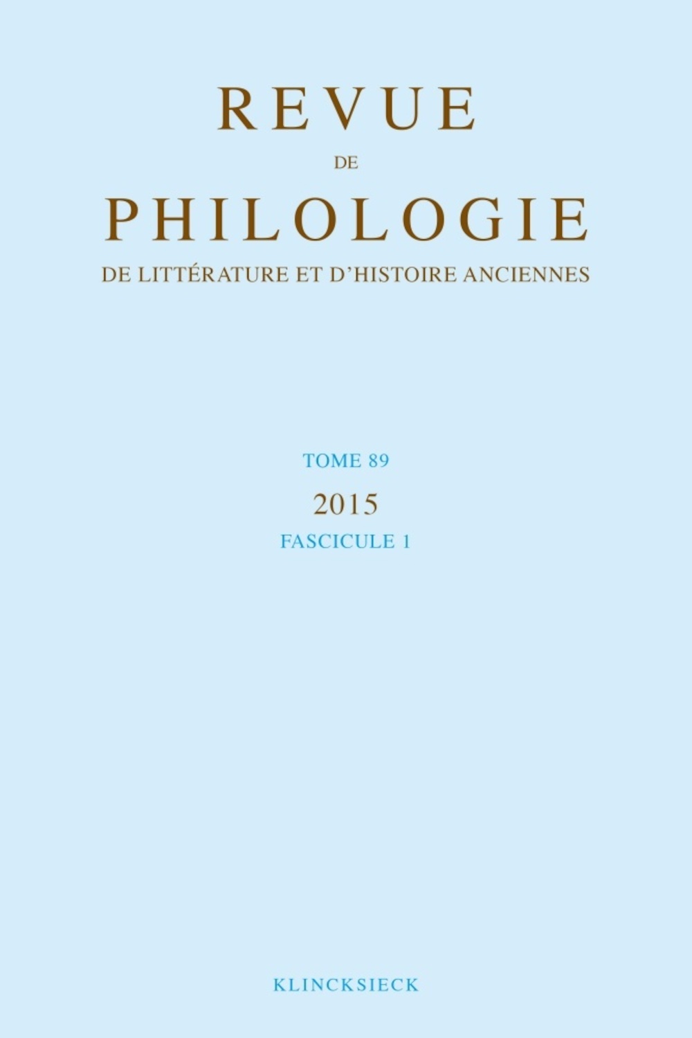 Revue de philologie, de littérature et d'histoire anciennes, v. 89-1