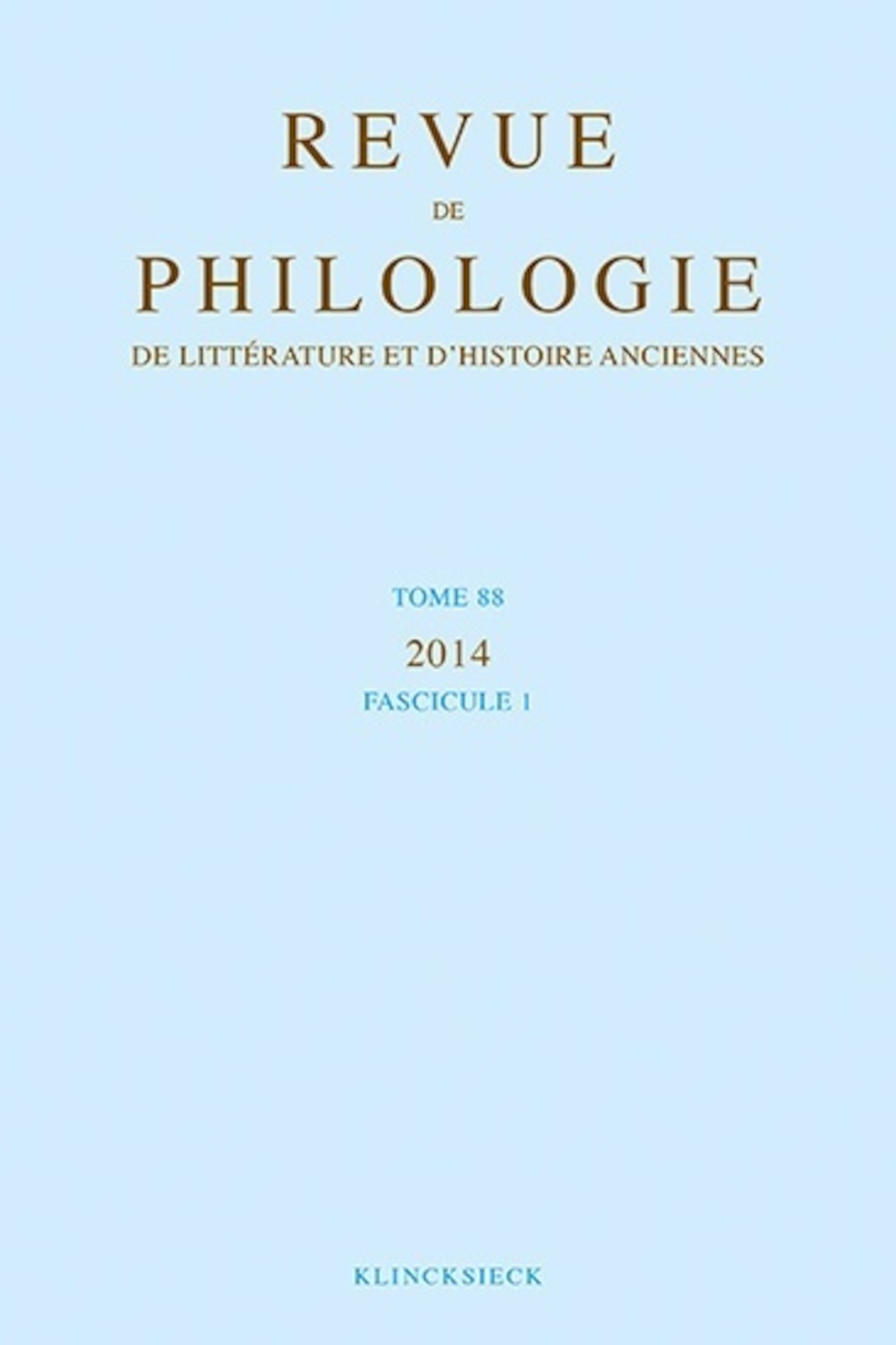 Revue de philologie, de littérature et d'histoire anciennes, v. 88-1
