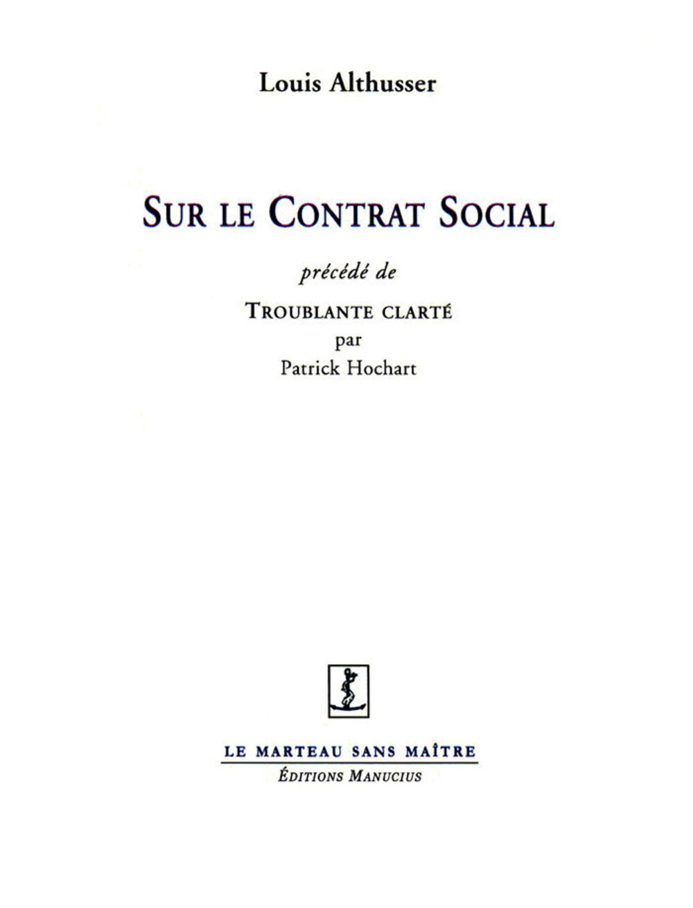 Le texte est présenté par Patrick Hochart, spécialiste reconnu de Jean-Jacques Rousseau. Professeur de philosophie à l’université de Paris VII. Patrick Hochart, ancien élève de l’ENS, assista au cours d’Althusser sur Rousseau ici republié et participa, [article Droit naturel et simulacre (L’évidence du signe)] avec Alain Grosrichard et Marcel Françon, aux Cahiers pour l’Analyse, n° 8, de mai-juin 1967, consacrés à Jean-Jacques Rousseau, dans lesquels le texte ici republié vit le jour pour une première fois.