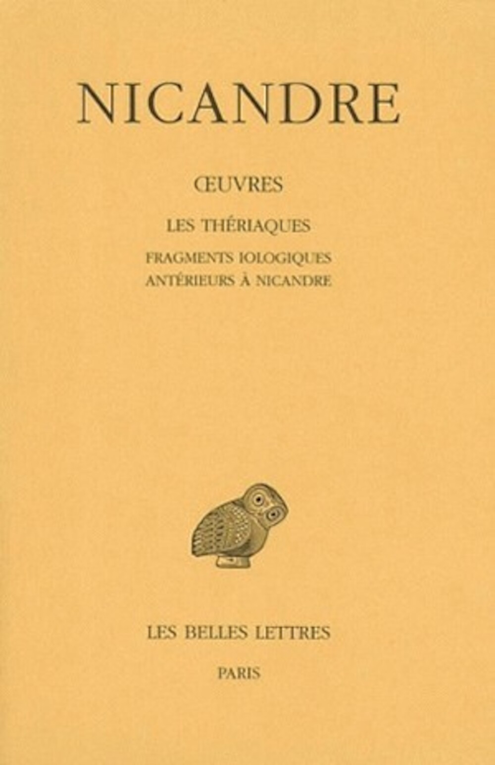 Thériades (Les) Fragments iologiques antérieurs Nicandre de Corcyre Jacques, J.-M. (Traduit par) - Éditeur : Belles Lettres (Les)