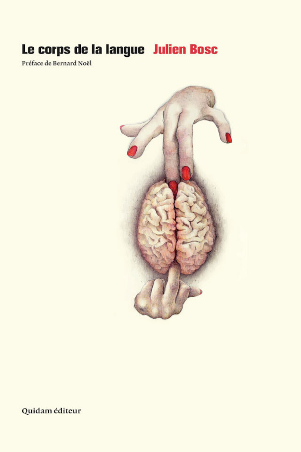 Le texte de Julien Bosc est un long poème érotique qui use du corps comme métaphore d'un travail sur la langue, dans un jeu entre un homme et une femme, la femme-langue ayant la maîtrise de ce qui se dit, l'homme amputé de sa voix n'étant que le corps éclaté du poème.